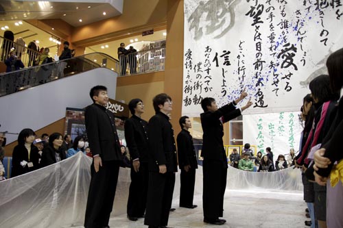 静岡県を代表する書道パフォーマンス発表会。年々参加者も増え、イベントのクオリティも大幅にアップし、クリスマスを飾る恒例のイベントになっている。毎回その年ごとのお題に合わせ、県内から200名以上の高校生が参加。巨大な紙に大筆を使い、カラフルな墨と躍動的な踊りでの表現は一見の価値あり。2018年以降はコンテスト形式にリニューアル!