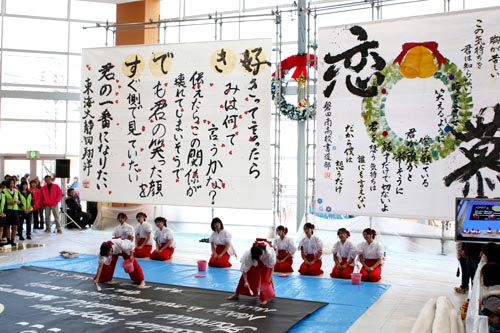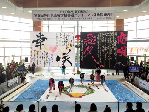静岡県を代表する書道パフォーマンス発表会。年々参加者も増え、イベントのクオリティも大幅にアップし、クリスマスを飾る恒例のイベントになっている。毎回その年ごとのお題に合わせ、県内から200名以上の高校生が参加。巨大な紙に大筆を使い、カラフルな墨と躍動的な踊りでの表現は一見の価値あり。2018年以降はコンテスト形式にリニューアル!