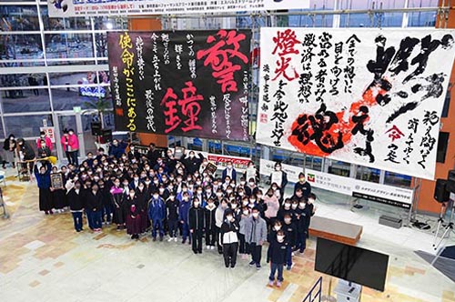 静岡県を代表する書道パフォーマンス発表会。年々参加者も増え、イベントのクオリティも大幅にアップし、クリスマスを飾る恒例のイベントになっている。毎回その年ごとのお題に合わせ、県内から200名以上の高校生が参加。巨大な紙に大筆を使い、カラフルな墨と躍動的な踊りでの表現は一見の価値あり。2018年以降はコンテスト形式にリニューアル!