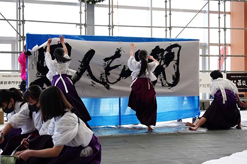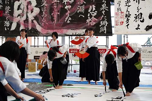 静岡県を代表する書道パフォーマンス発表会。年々参加者も増え、イベントのクオリティも大幅にアップし、クリスマスを飾る恒例のイベントになっている。毎回その年ごとのお題に合わせ、県内から200名以上の高校生が参加。巨大な紙に大筆を使い、カラフルな墨と躍動的な踊りでの表現は一見の価値あり。2018年以降はコンテスト形式にリニューアル!