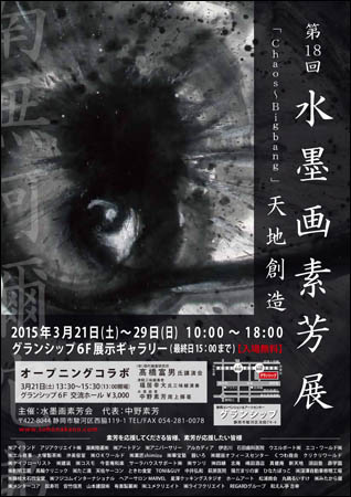 海外まで幅広く活躍する水墨画家 中野素芳氏の展覧会。開催初日は、中野素芳氏の席上揮毫・福居幸大氏による三味線演奏・高橋富男氏による講演会とイベント盛りだくさん!