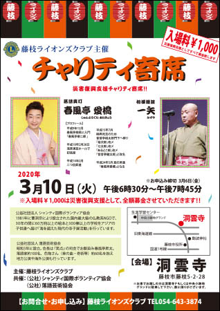 藤枝ライオンズクラブ主催 チャリティ寄席
