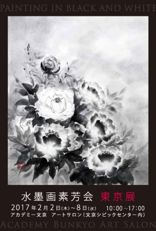 東京の淡路町教室と新小岩教室、そして静岡の生徒による作品展。東京の精神画とも言われる幽玄な水墨画の世界をご堪能ください。