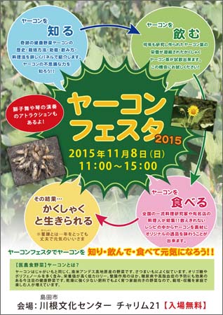 ヤーコンフェスタでヤーコンを知り・飲んで・食べて・元気になろう!獅子舞や琴の演奏のアトラクションもあるよ!